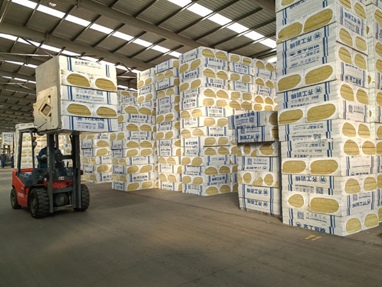 齊工巖棉板是以玄武巖為主要原材料,經(jīng)過沖天爐高于1450℃使原材料充分熔化,經(jīng)過高速離心機(jī)甩絲,形成巖棉纖維,用高速鼓風(fēng)機(jī)使其噴吹冷卻成型,在噴吹過程中添加一定比例的高效粘合劑,由大型擺錘設(shè)備呈三維布棉狀態(tài)均勻鋪棉,由履帶將布好的巖棉傳送至壓力設(shè)備中,使其形成一定密度的巖棉板,后經(jīng)高溫烘干爐烘干后,送至冷卻出風(fēng)口使其冷卻固化,切割不同規(guī)格的成品。